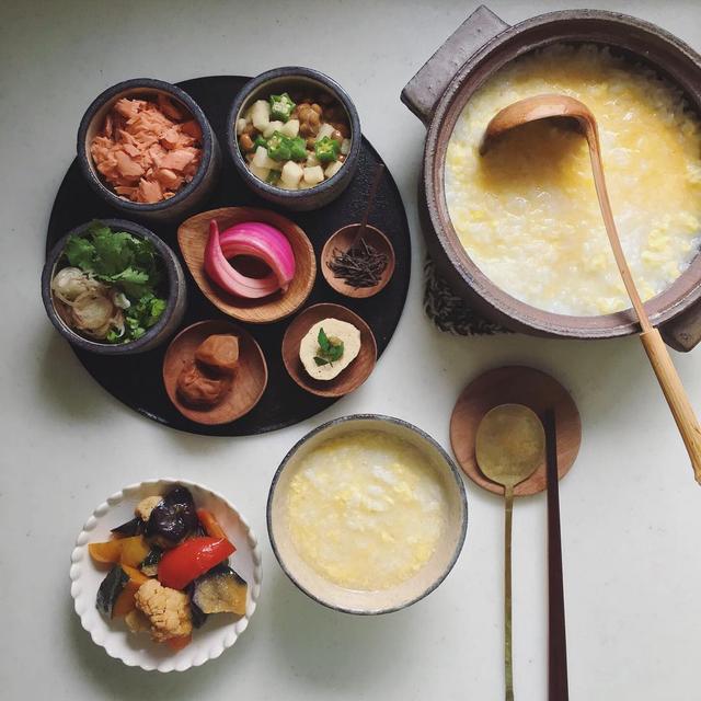 Today's breakfast. おはようございます 今朝はお粥 えりこさん( @une_vie_favorite )の真似っこしてたまご粥にしてみました * 今日も良い日になりますように☺︎