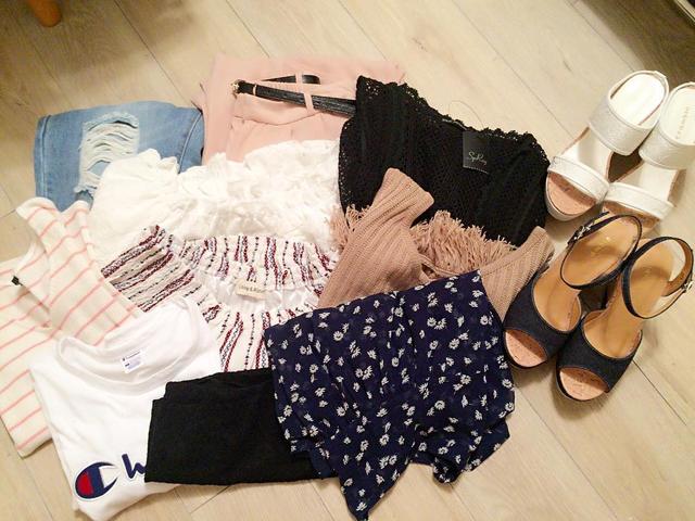 #20160525 1日お買い物dayっ!!︎ トップス6着 (オフショル2着、インナー4着) ロングカーディガン2着 パンツ2着 靴2足 . 10着と2足も買っちゃった 新作シャンプーもお試しっ 気付いたら4万超えててビビった笑