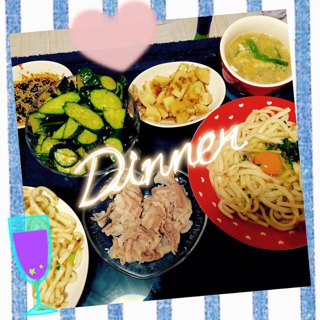 梅カツオうどん卵スープ冷しゃぶたけのこ水煮 最近暴飲暴食が過ぎたので さっぱり系でまとめました(•ө•)❤️ 、 #自分中心のmenu #さっぱり系 #きゅうりが異様な量 #4本ぶん #毎日胃もたれ
