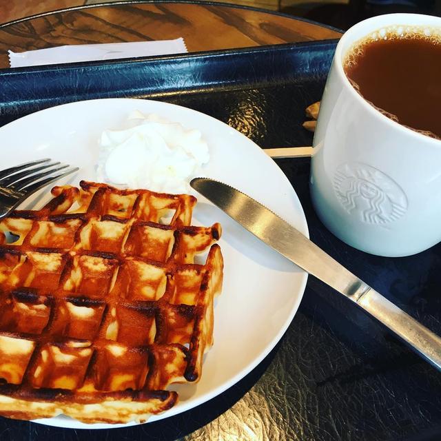 #cod#パイクプレイスロースト カップに入れ過ぎこぼれた テーブルもガタガタ #ワッフル#wc パイクプレイスロースト 香ばしくて結構すき #スタバ#スターバックス#starbucks