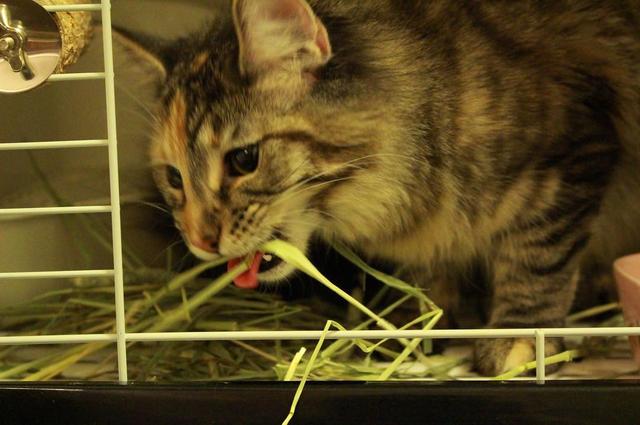 うさぎのケージに進入してチモシーを盗み食いするねこ。 #ノルウェージャンフォレストキャット #ねこ #チモシー #不法進入 #うさぎマジギレ