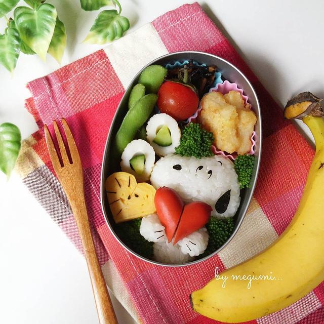 2016-05-26(Thu)♡♡*こんにちは。今日の幼稚園弁当~♬* ゚*今日はスヌーピーのリクエスト。ハートを持たせてみました♡デザートはバナナを丸ごと1本持って行くんだって(笑)"**さて昨日お迎えに行ったら預かり保育に行きたいと大泣きしてました。年少さんはおととい始まったばかりで預けたらまだ泣くんだろうなぁって思ってたからびっくり!*なので今日は急きょ預かり保育へ。やったぁ~!お兄ちゃんが帰ってくる15時までひとりだ(* ́艸`*)**#キャラ弁 #デコ弁 #手作り弁当 #幼稚園弁当 #スヌーピー弁当 #キャラおにぎり #スヌーピー #ウッドストック #homemade #lunchbox #snoopy #peanuts #ilovesnoopy #kaumo #kurashiru #lin_stagrammer #delistagrammer #locari #locari_kitchen @locari_kitchen**