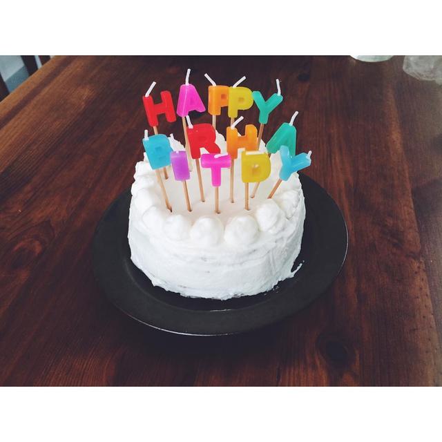HAPPY BIRTHDAY . 今まで作ろうとも思わなかったけど ケーキを作れるお母さんになりたくて、初めて作ったショートケーキ . 2016.5.26 35w1d