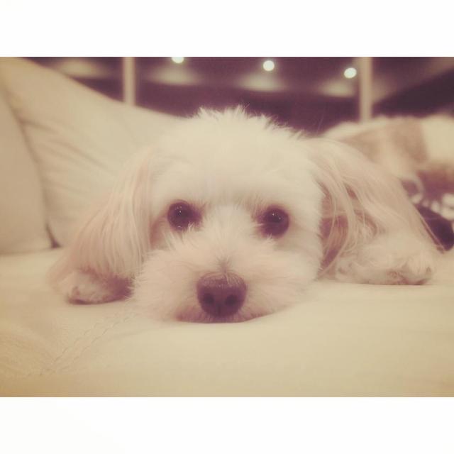 ジムウェアのブラトップに、すっぽり頭と腕を通してかまって♡ってポーズしてるウィルくんほんとイタズラ大好きやんちゃ坊主ぷくぷくほっぺも大好きだよ❤️#dog #マルプー #ウィル #男の子 #来月6歳 #毎日やんちゃ #love #今私の太ももにくっついて寝てる