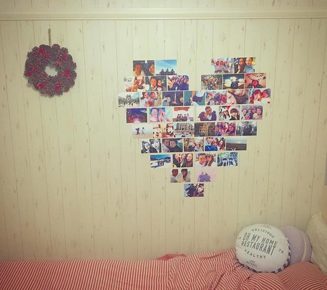 . ベッドの横に大好きな人たちとの大好きな写真を貼ってみた不器用ながら頑張ったな〜なつ #myroom#love#photo#bed#heart