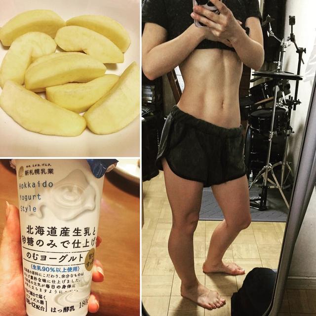 おは腹筋♪( ́▽`) 連日サボってたので珍しく朝宅トレ✨ ゴハンは林檎さんとのむヨーグルト 今日は夜ランしたかったのに雨☔️ #腹筋 #宅トレ #短足 #豚足 #りんご #のむヨーグルト #北海道 #生乳 #新札幌乳業 #ビフィズス菌