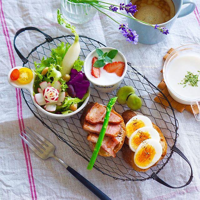 . gm〜☁️ . ビアンヴニュさんで買ってきた バゲットに卵とベーコンのせて #おはよう 〜 きょうは「完全おこもりday」にして イエゴトに 勤しみます\(๑^ ^๑) ...予定(笑) 今日もいい日を〜 have a good day .