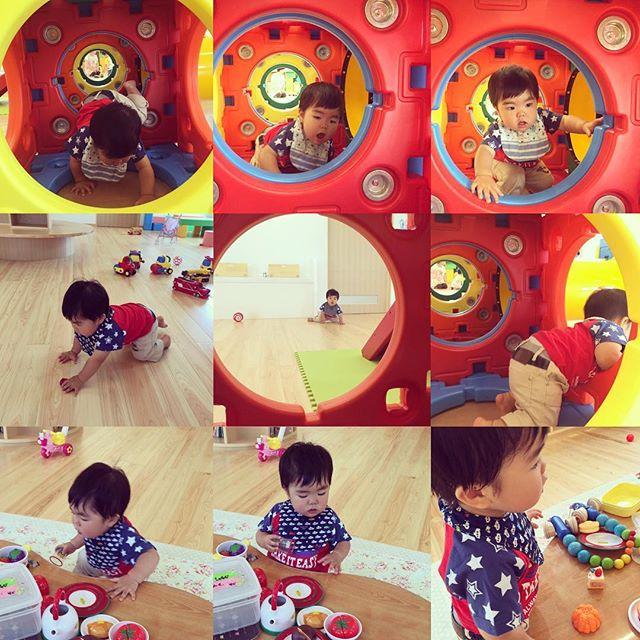 暑くて公園には行けず .午後から #かすやこども館 に初めて行ってきました〜✨ .お家にはないオモチャばかりでとっても楽しそうだった〜! これは、お父ちゃんにも行ってもらおう . .#福岡 #粕屋町 #スタイ全滅 #来ている子ども達のスリムさに驚く... #誰よりも動く #誰よりも素早い #誰よりもリアクションが大きい #特におままごとのハンバーグやらチキンライスに興奮 #帰りたくないよねぇ #いただきますで釣る作戦 #帰りが本当に大変でした #男の子 #1歳5ヶ月 #福岡ママ