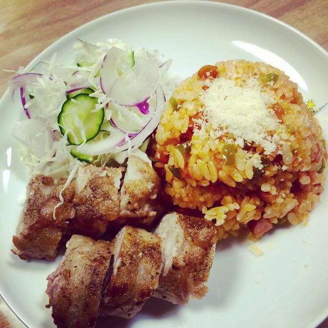 噛めないーー でもお腹すくからご飯作るー どーしてもチキンライス食べたくて #オムライスにするの面倒くさくなた #チキンライス週一で食べたい #手抜き飯 #ワンプレートご飯