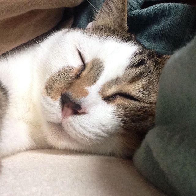 Good morning おはようございます 私を二度寝に誘う甘えん坊 #猫 #ネコ #ねこ #cat #ギズモ #猫の寝姿