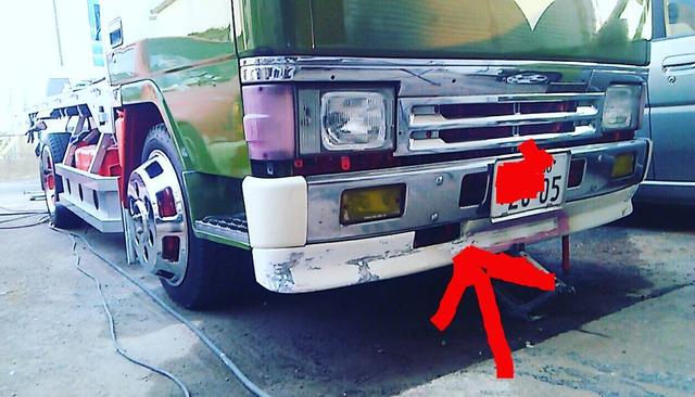 純正スポイラーもついでに装着します✨#デコトラ#キャンター#スポイラー#赤い矢印