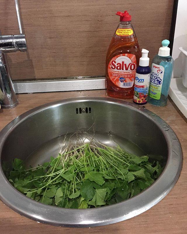 ベランダ菜園の大根、根っこは多分立派にならないので葉っぱを楽しむべく、下処理...。何ができるかな〜♪( ́▽`)