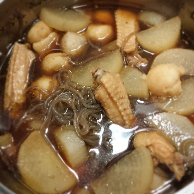 ..できました!完成ッ早く食べてもらいたい (〃▽〃) ↴#さといも #大根 #糸こんにゃく#手羽中 #羽月特製の煮物#醤油 #白だし #砂糖 #朝鮮漬#初めての薄味に挑戦してみました#食材の味が生かされていた#とても美味しいくできました .