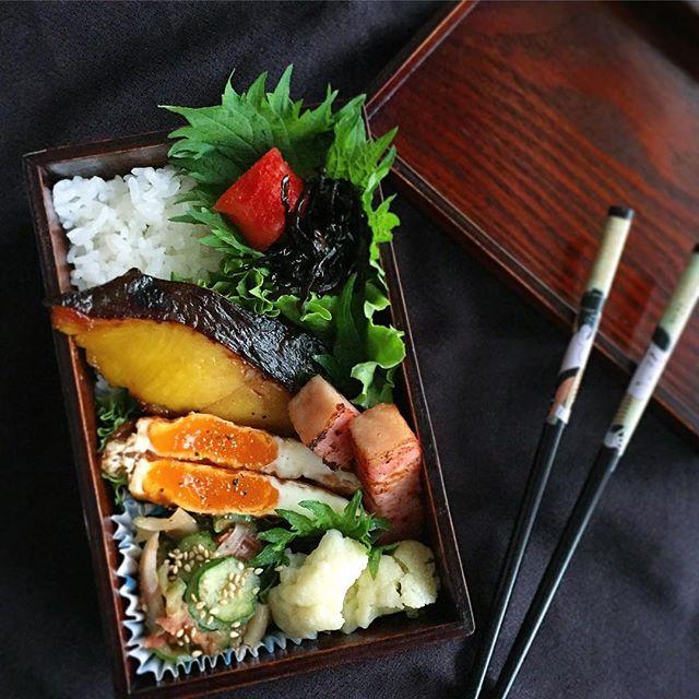 ね、眠い... お父ちゃん弁当銀タラ西京漬け目玉焼きのお好み焼きソース味角切りベーコンソテーカリフラワーの柚子胡椒ピクルスザーサイと胡瓜の梅カツオ和え明太子と昆布ごはん.野菜のお菜が酸っぱいものかぶり.週末お出かけしまくりだったので、運動不足の私の脚が悲鳴をあげております。.そしてそして、美味しいものを食べて飲んでたおかげで.すっかりパンパンになってしまった寝起きの顔を鏡で見て、リアルに悲鳴をあげたくなった、.そんな朝。..ゆるっと調整はじめまーす(ほんとか)(ง o̴̵̶̷౩o̴̵̶̷ )ง