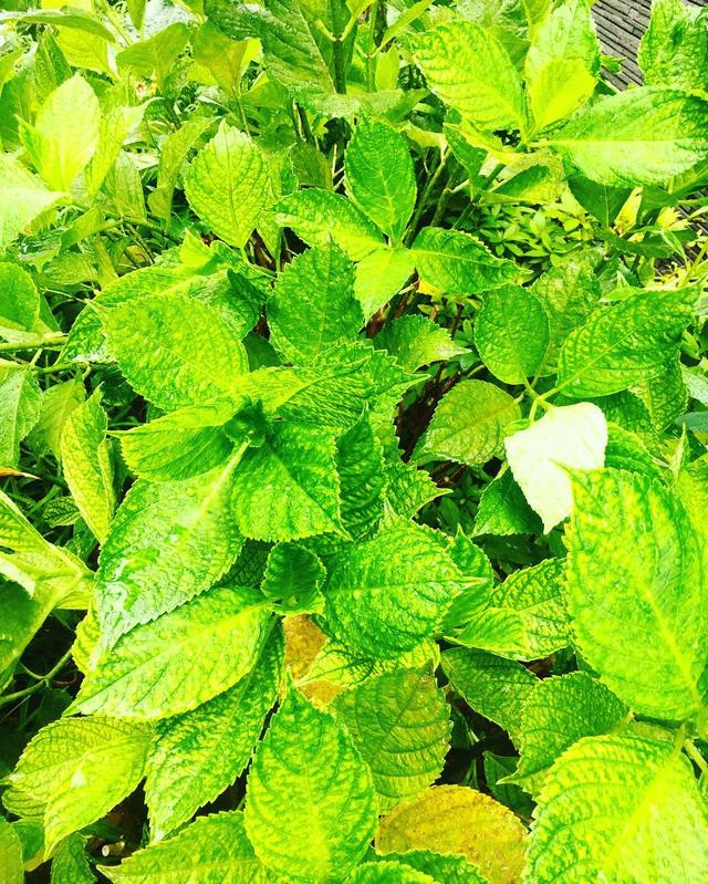 In front of my condo I saw hydrangea's leaf so green