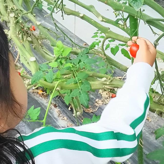いちご狩りじゃないよ!笑っ トマトだよー #上手にとれました#笑っ#農家体験#トマト#tomato#はりきってとったから#かごが重い