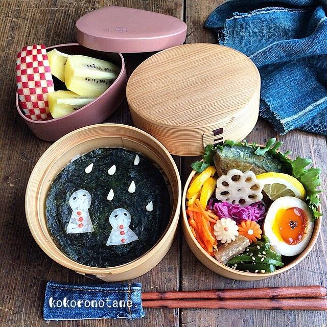 ❁.*⋆✧°.*⋆✧❁Today's bento.・『てるてる海苔弁当⁞⁝⁞☔️⁝⁞⁝⁝』・明日で5月も終わりですって。#衣替えもしてなければ未だ冬布団で寝てる私。・時にはヒートテックも現役♡#ハイネックの・・#こころのたね弁当・❁.*⋆✧°.*⋆✧°.*⋆✧°❁
