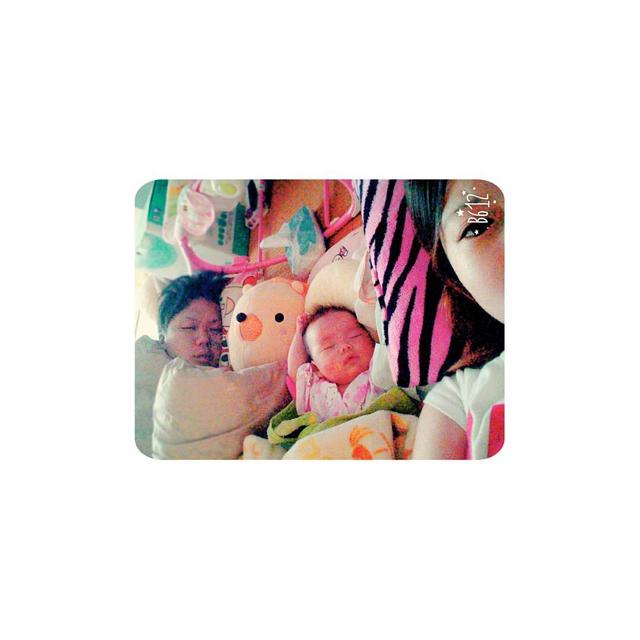 朝から不意に横向いたら二人ともがこっち向いて寝よるってゆう #寝顔ぶしゃいく やけど #二人とも #顔が激似 #どしてそんなにパパ似なの? #朝からほっこり