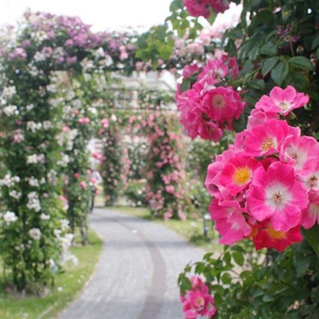 The way of the arch of the rose is beautiful successively 薔薇のアーチが続く道、綺麗でした 薔薇の季節,もう少し楽しみたいと思います #huistenbosch #roses #ハウステンボスバラ祭 #igrose #igflowers #薔薇のアーチ #バラ #ローズガーデン #rosegarden