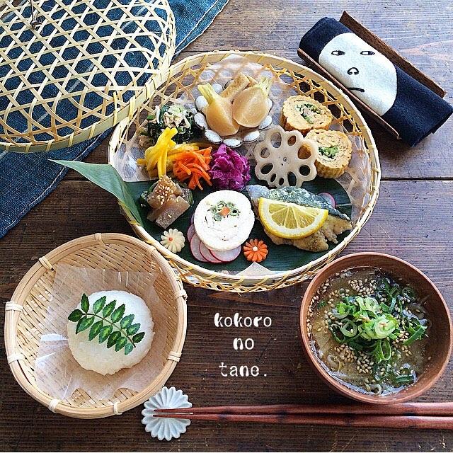 ❁.*⋆✧°.*⋆✧❁ Today's lunch. ・ 作り置きおかず色々のっけ 「花籠膳」。 ・ ・ #こころのたねゴハン ❁.*⋆✧°.*⋆✧°.*⋆✧°❁