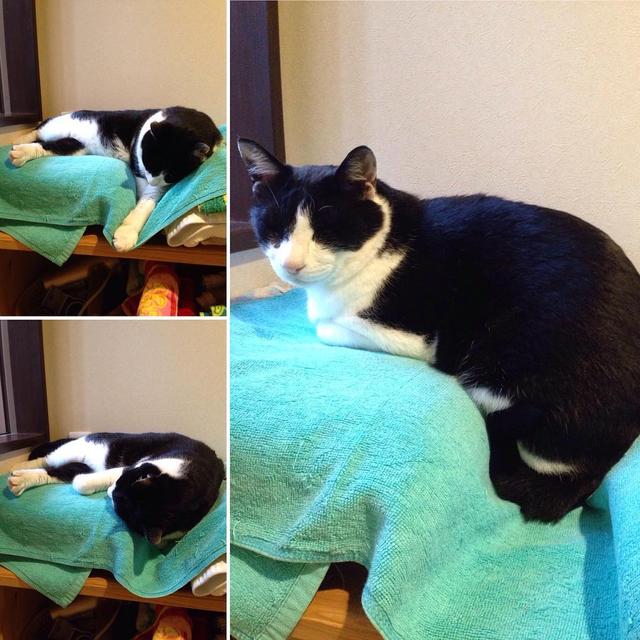 さっきの続き どんどん割れ目に落ちていっちゃったんだね #猫 #ねこ #ネコ #cat #マックス #黒白 #ハチワレ #はちわれ #猫の寝姿
