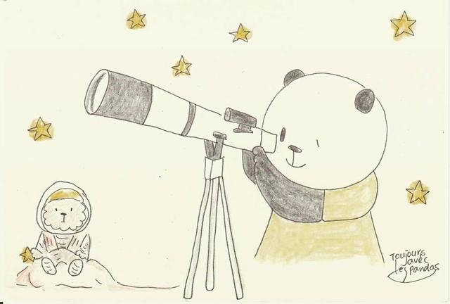 ぱんだ記 5月31日「火星最接近」 #ぱんだ歳時記3 #ぱんださんの小径 #panda #illustration 「火星見えるかなぁ」