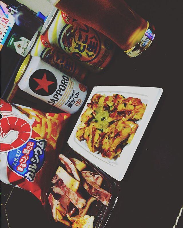 おつかれさまひとりのみ。 おちつきます。笑 #びーる#サッポロ黒ラベル#のどごし生#かっぱえびせん#やきとり#いかちゃん#にけつ #良き時間#癒しの時間