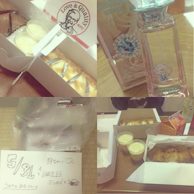 .ラスト〜仕事終わって寮戻ったらるかからのプレゼントありました〜ずっと欲しい言ってた香水とトロイカのチーズケーキとケンタッキーがテーブルに置いてあって言葉にならない嬉しさでした〜仕事場でもロッカーの前に先輩からのプレゼントあってみんなからおめでとう言われてほんと幸せものです!LINEくれた人もひとことに書いてくれた人もトプにしてくれたり画像くれた人もみんなみんな有難うございました!素敵な1年になりそうです!