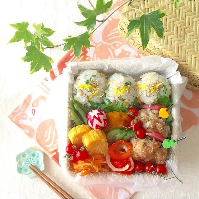*6月になりました!!️なのに北海道雪降るかもってほんとですか(笑)そう言われると、外の空気がひんやりしてる気がしてくる単純さんです**今日は鶏つくねのくるみ味噌焼きです。味噌練り込むの忘れましてくるみ味噌で焼きました茅乃舎だし入れてるのでつくね自体にも味があって美味しい**おにぎりはわらびのナムルと沢庵で。もち麦がいつもとの違う茶色のなんだけど想像以上に粒々目立つのケロッグのチョコクリスピー入ってるみたいなので食用菊も散らしといたよ**今日はなんだか、またまた天然ボケ?炸裂な感じで朝からいくつかやらかしてますお弁当もそんなふうな感じだし上唇のとこ思っ切り噛んだし←流血_:( ́ཀ`」∠):_小指ぶつけたし(*」>д<)さっき間違って途中で投稿しちゃったからまぼろし見た方ごめんなさい(笑)今日は安全に1日過ごせますように✨・・・・・・・・・・・・・・・・・・・・#お昼ごはん#ランチ#おべんとう#お弁当#常備菜#常備菜弁当#昼ごはん#作り置き#kurashiru#ランチボックス#朝時間#lunch#obento#lunchbox#japanesefood #yummy #野菜#つくりおき#delistagrammer#お弁当記録#ロカリ#クッキングラム#kaumo#igersjp#ひろ弁2016#lin_stagrammer#かご#おにぎり#おむすび#おにぎり弁当