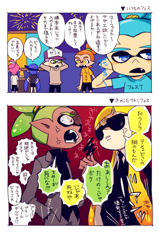 いつもは平和なフェスだけど今回のきのこたけのこフェスはハイカラシティに赤いインクが飛び散りそうだよね… https://t.co/X8WQeryDFv #話題の画像 | https://t.co/jgJmjqBNz3 https://t.co/DWbiTQWlU8
