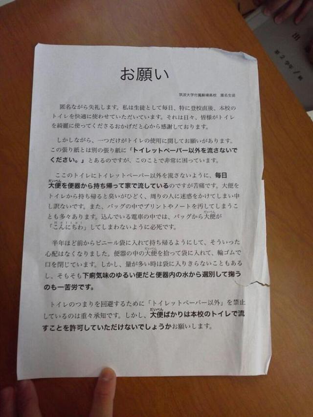 学校のトイレにあった張り紙 https://t.co/UUdYx ...